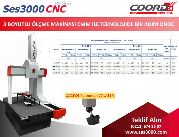 Ses3000, YCM SUPERMAX, JOEMARS EDM, MasterCAM, SolidWorks ve Coord3 CMM ‘in Türkiye distribütörüdür.