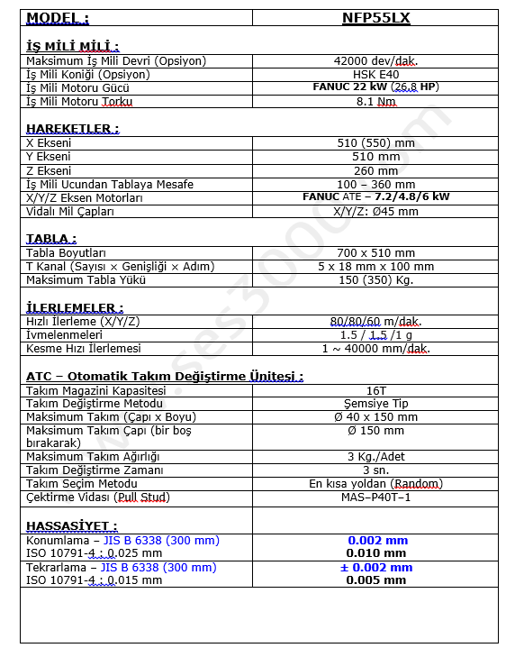 NFP55LX Serisi 5-EKSEN CNC İşlem Merkezleri