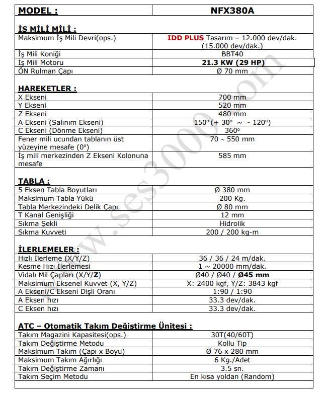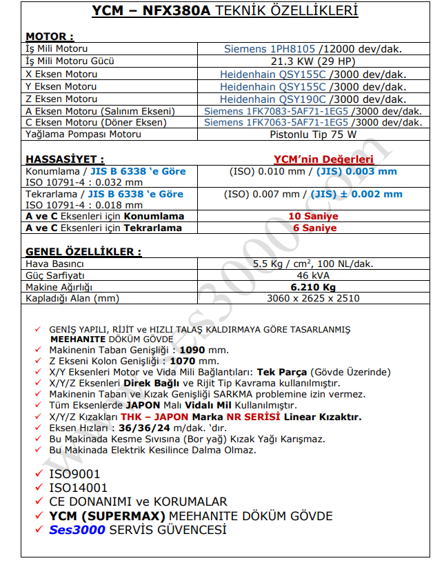 YCM – NFX380A TEKNİK ÖZELLİKLERİ