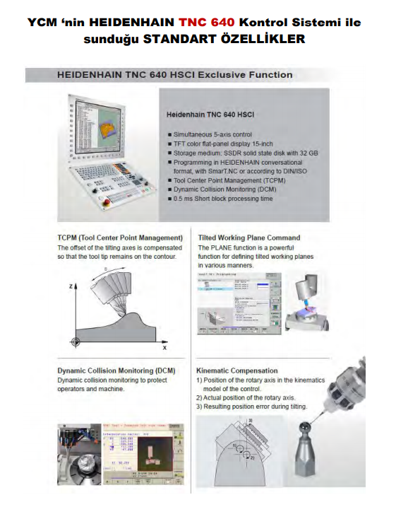 • HEIDENHEIN TNC640 (Option 1 & Option 2 dahil) Kontrol Sistemi