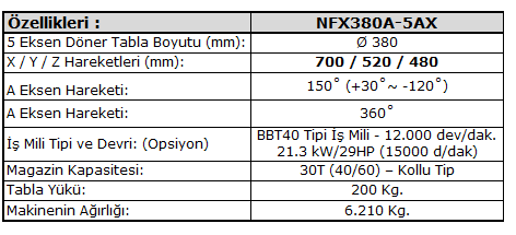 NFX380A 5-EKSEN CNC İşlem Merkezi
