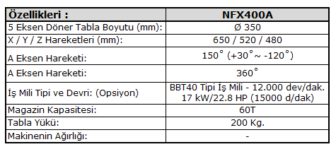 NFX400A 5-EKSEN CNC İşlem Merkezi