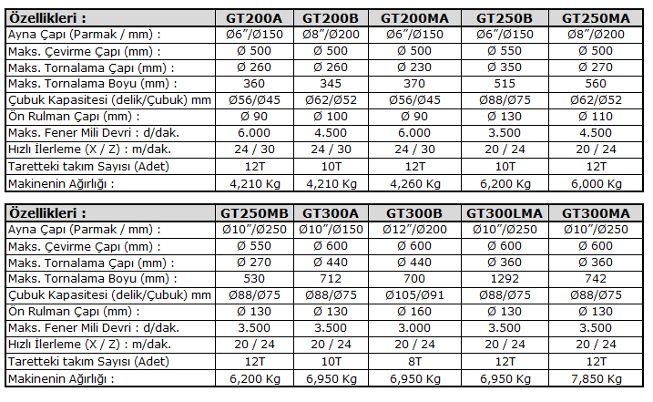 YCM – GT200A/B CNC TORNA ÖZELLİKLERİ