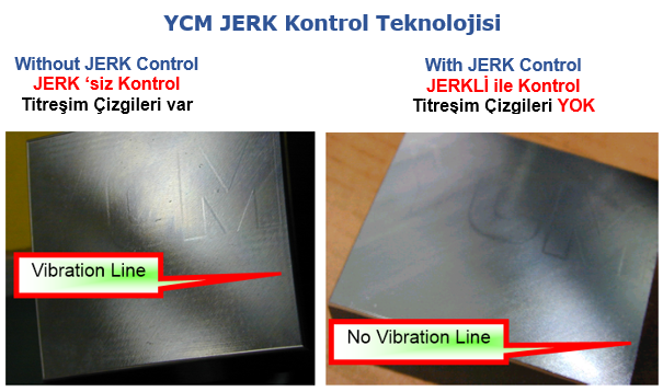 YCM JERK KONTROL Teknolojileri – Daha Hassas ve titreşimsiz İşlemeler ve çok daha temiz işleme yüzeyleri sağşlar.