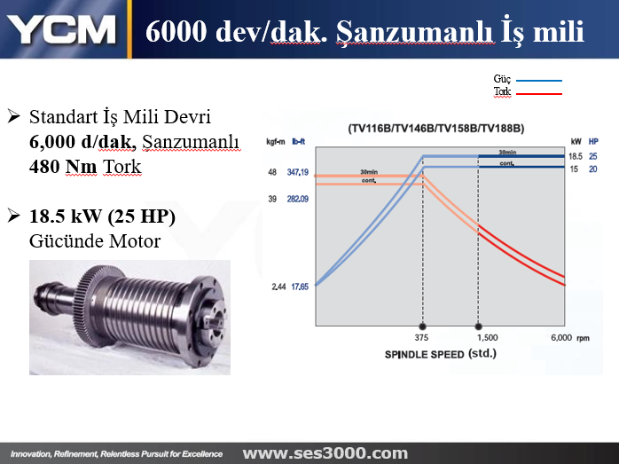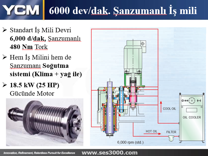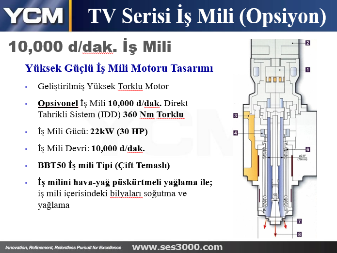 YCM, İŞ MİLİ (SPINDLE)’ı %100 YCM ‘nin kendi fabrikasında ürettir, dairesellik, titreşim ve kesme testleri yapar ve tezgahlara kalite kontrolden geçirerek takar.