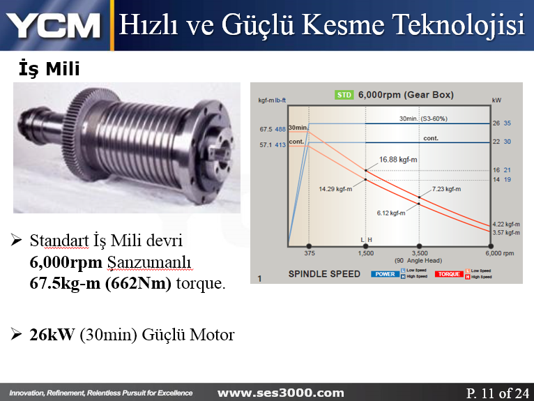 - Yüksek Torklu İş mili motoru : 26 kW (35 HP)