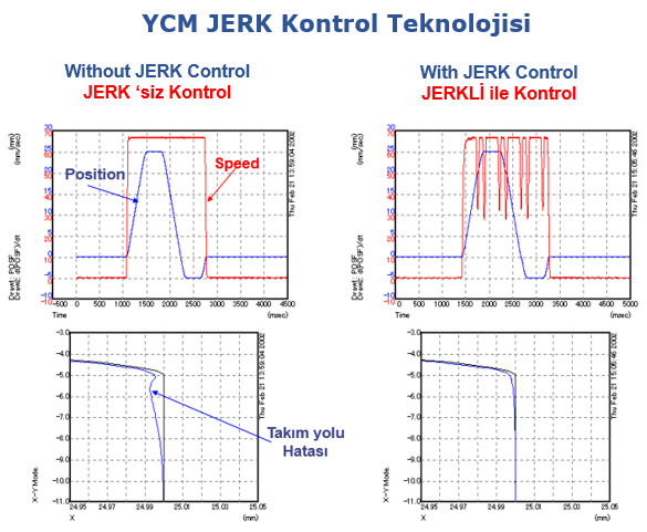 YCM JERK KONTROL Teknolojileri – Daha Hassas ve titreşimsiz İşlemeler ve çok daha temiz işleme yüzeyleri sağşlar.