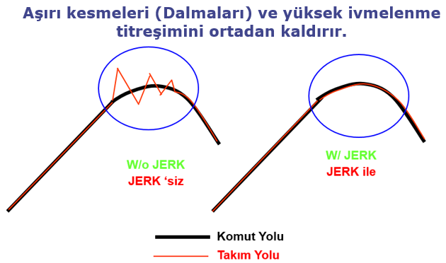 - JERK KONTROL – 2D ve 3D Dönüş hızlarını otomatik ayarlar, hassas işleme sağlar.