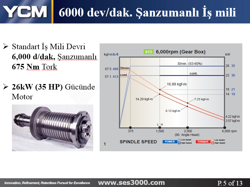 - İş milinde YÜKSEK TORK için YCM’in kendi Üretimi ŞANZUMAN (Gearbox)