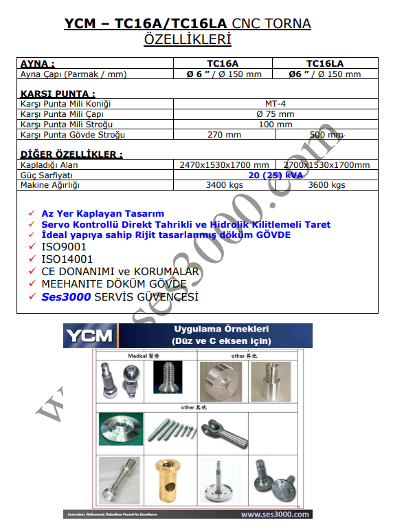 YCM TC Serisi Rulmanlı Kızaklı CNC Torna Tegahları