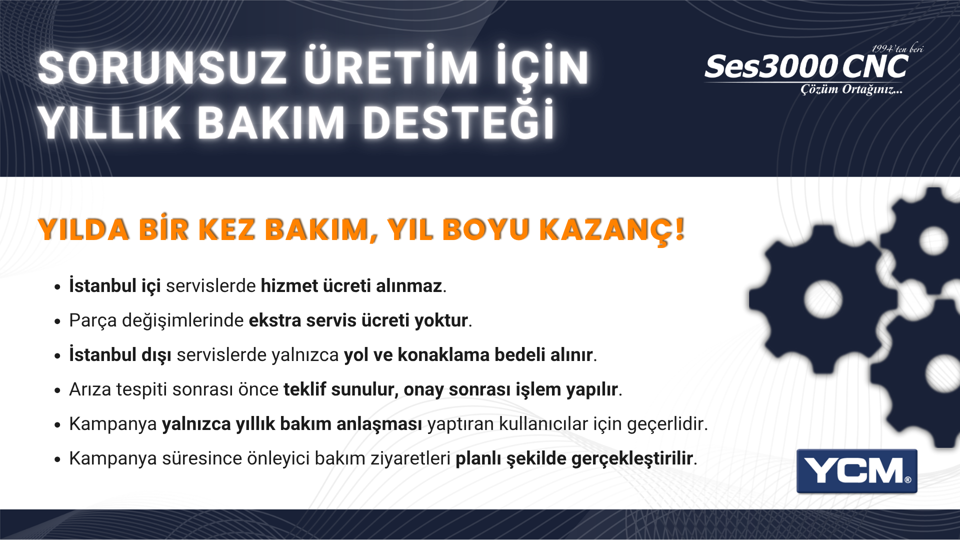 Sene sonuna özel bakım kampanyamızla hem arıza riskini azaltın hem de üretim gücünüzü koruyun. Kampanyadan yararlanmak için hemen iletişime geçin!