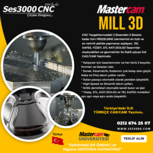 • Mastercam Mill (Freze ve İşleme Merkezi)