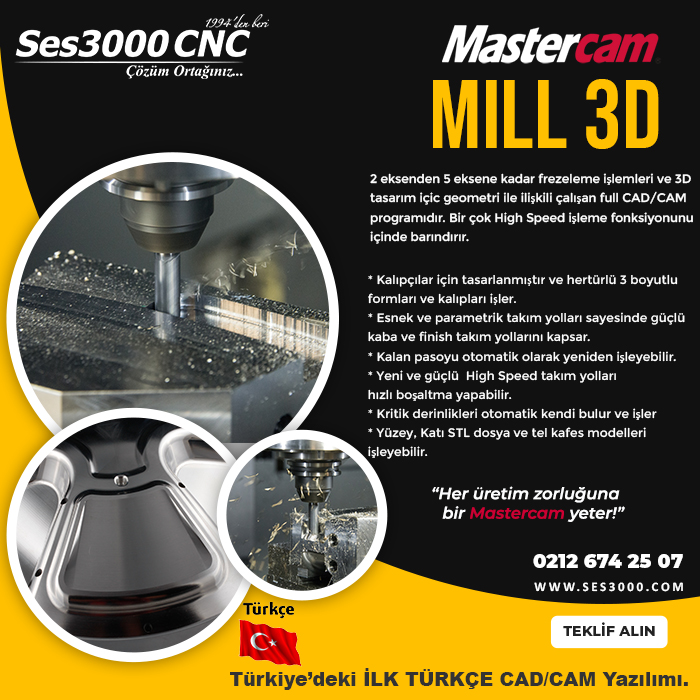 Ses3000, Mastercam ürün ve hizmetleri alanında Türkiye’de tek distribütör bayi olarak hizmet vermektedir.