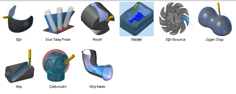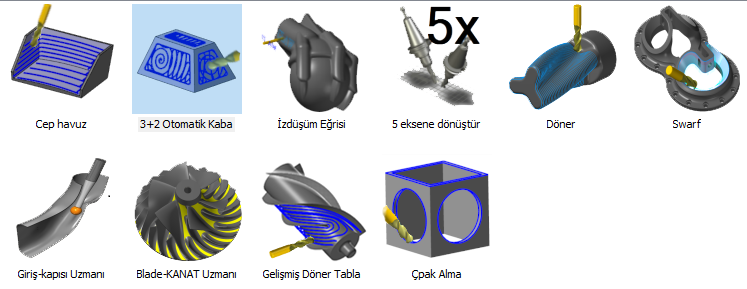 Aşağıda Mastercam ÇOKLU EKSEN (MultiAxis) Takımyolları Stratejileri görülmektedir.