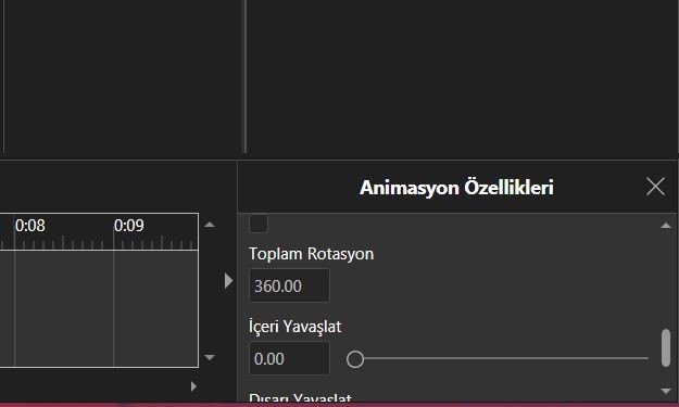 Animasyon özellikleri kısmından ,Toplam Rotasyon miktarını yönünü ve dönme eksenlerini değiştirebilirsiniz.