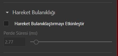 Şekil 3: Komutu Etkinleştirme (Kameralar>Gelişmiş>Hareket Bulanıklığı)
