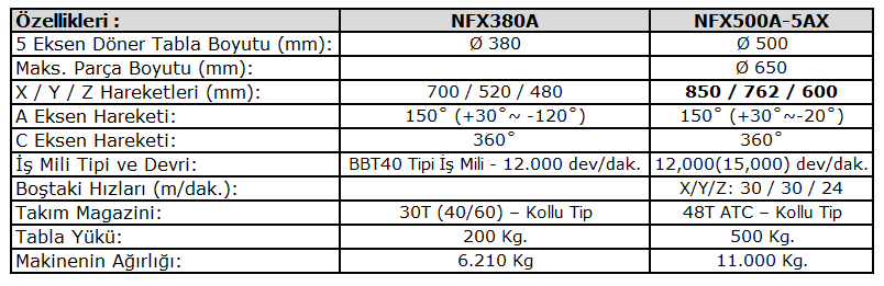 YCM – NFP500A-5AX TEKNİK ÖZELLİKLERİ