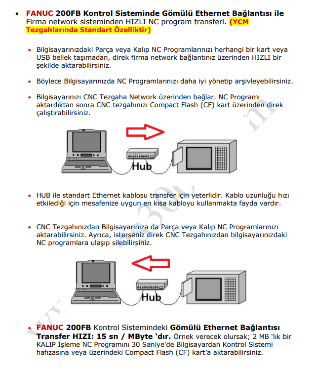 - Ethernet Bağlantısı (Firma network sisteminden kablo ile NC program transferi imkanı)