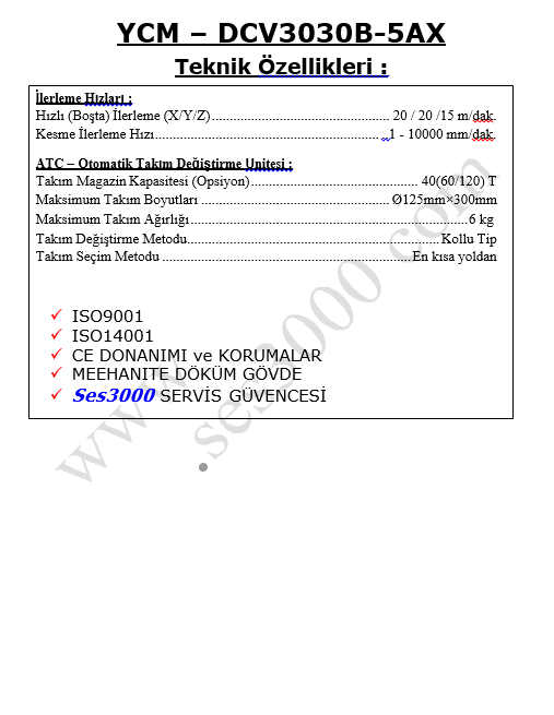 YCM – DCV3030B-5AX TEKNİK ÖZELLİKLERİ
