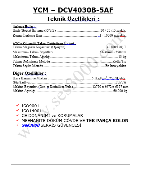 YCM – DCV4030B-5AF TEKNİK ÖZELLİKLERİ